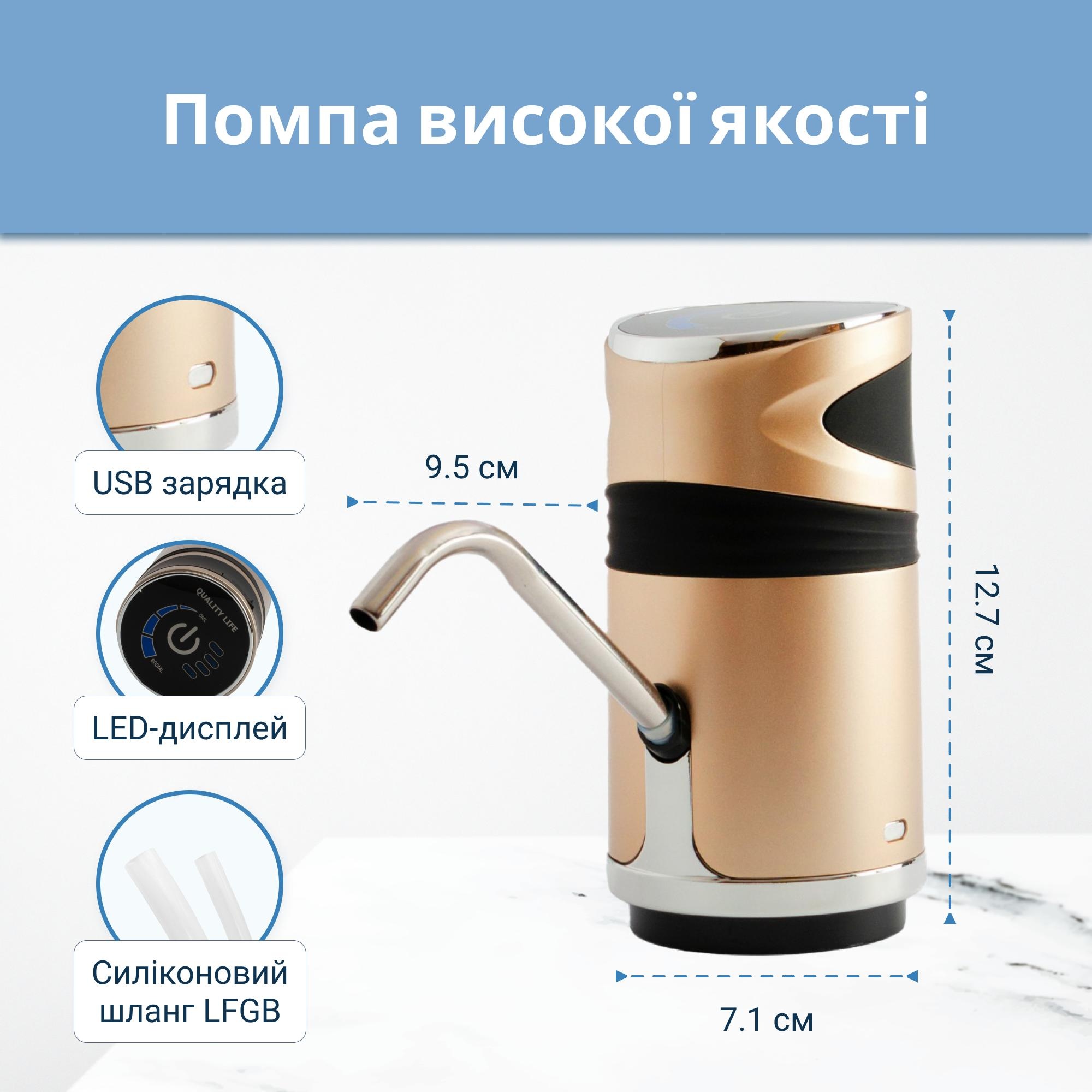Модель ViO E12-DS сумісна з бутлями 13-19 літрів, забезпечуючи щільне кріплення без протікань. Харчовий силіконовий шланг гарантує гарантовану чистоту та безпечність води, не змінюючи її смак і не виділяючи запахів.