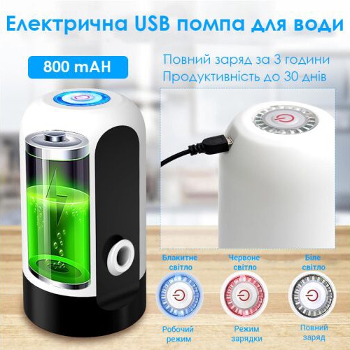 - Простота використання: Помпа має зручний механізм роботи. Для подачі води достатньо натиснути кнопку, а для зупинки — ще раз. Зручність і легкість у користуванні роблять пристрій ідеальним для всієї родини, включаючи дітей і літніх людей.